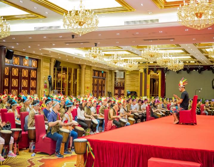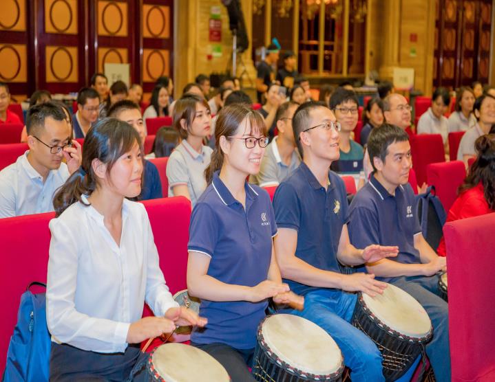 初始,在無言的敲打演奏中,每位北科人皆特立獨行,樂章零落散碎,主持人便提出北科多年來在細(xì)胞領(lǐng)域堅持的三個關(guān)鍵詞“專心、專業(yè)、專注”以勵大家,無論何時、何地、何事,身為北科一份子,北科人都應(yīng)上下一心、和而不同,在共同的目標(biāo)面前,所有人放下自己的身份、地位,只為實現(xiàn)在北科生物十三周年慶的今日,為它送上一曲誠摯的生日祝福。最后,在主持人耐心的引領(lǐng)下,在場的300余位北科人統(tǒng)一節(jié)奏、鼓點,為北科生物13周年慶典送上一曲慷慨激昂的音樂祝福!